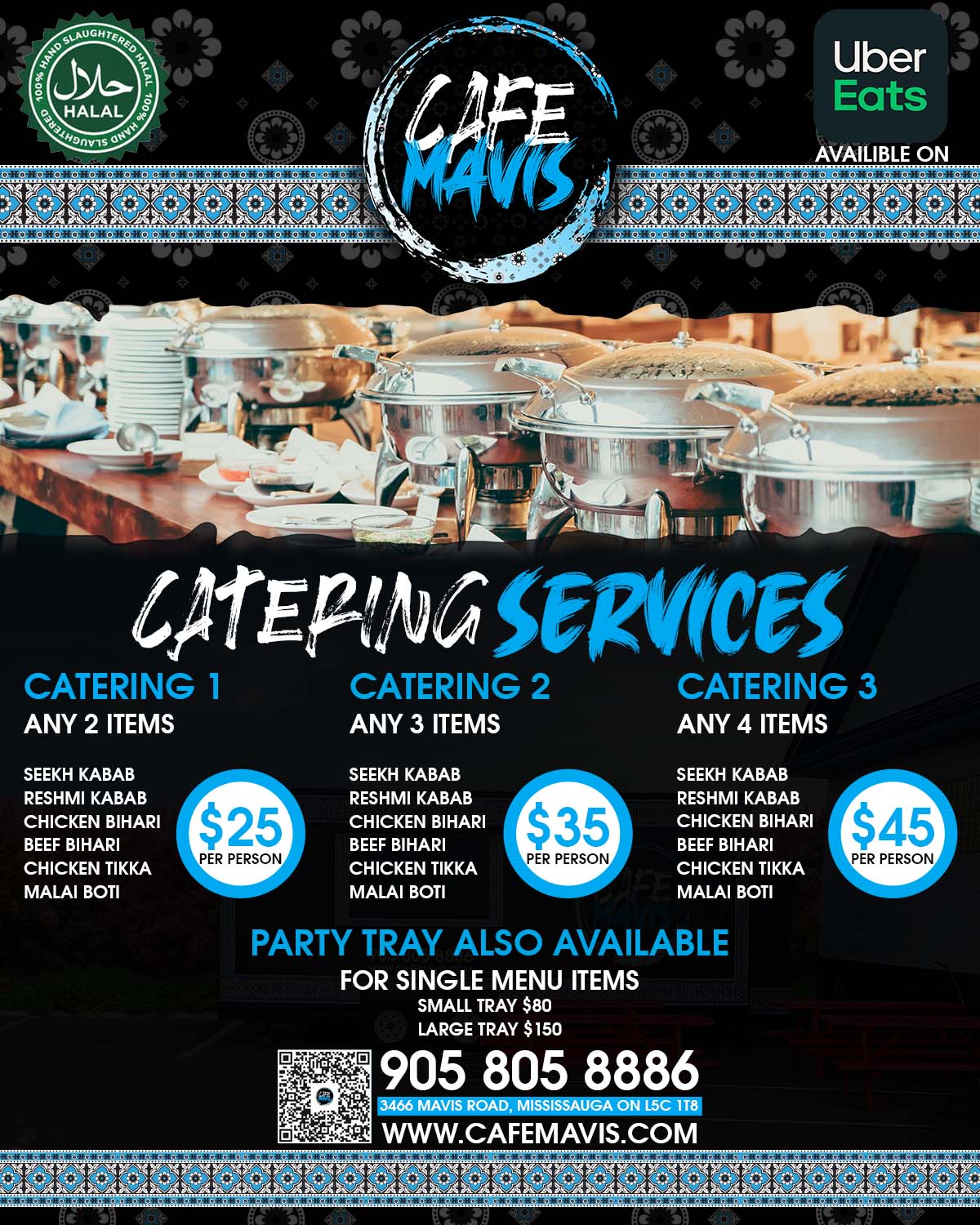 Welcome to Cafe Mavis, the authentic flavors come to you on wheels! Enjoy fresh, delicious food from our food trailer in Mississauga and surrounding areas. Experience the taste of Charcoal BBQ with freshly cut meat, marinated daily in homemade spices.